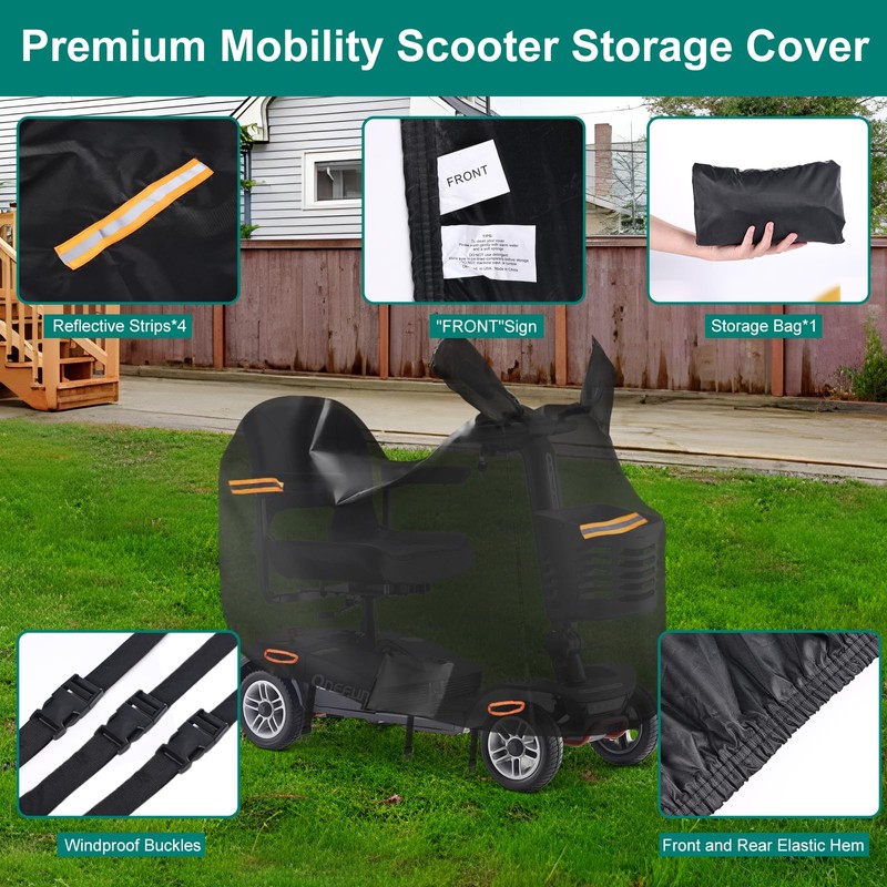 • Easy to Use & Store: The fabric of our mobility scooter cover is lightweight and tear-resistant, and easily folds into a storage bag (included), making installation and removal hassle-free