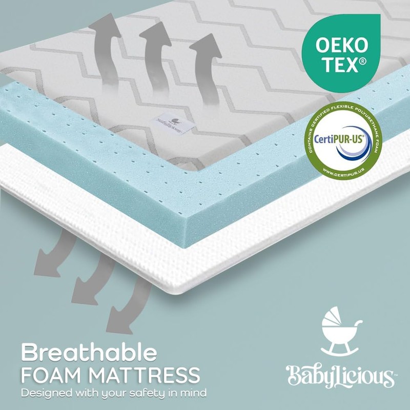 Waterproof Pack and Play Mattress Pad - 38" x 26" | Roll Up Style - Breathable Soft Memory Foam - Portable Mattress Topper- Baby Foam Mattresses for Babies - Includes Easy Carry Buckle