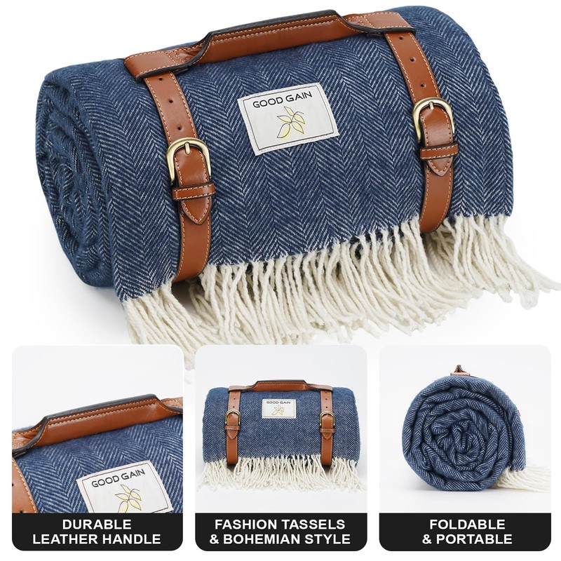 - PRACTICAL 2 in 1 Design- Our picnic mat is the perfect solution for picnics throughout the year. Our unique two-in-one design allows our Boho camping blanket to serve multiple purposes.Complete with a 100% acrylic body and PU leather handle, style, beauty, and practicality are seamlessly combined. We use tassels and unique herringbone lines as decoration to make the large picnic blanket extra special with multiple elements.the black bottom layer serves as a waterproof mat, providing protection against moisture and dirt for a comfortable outdoor experience. Additionally, it serves as a fantastic backdrop for photos.