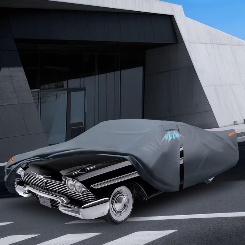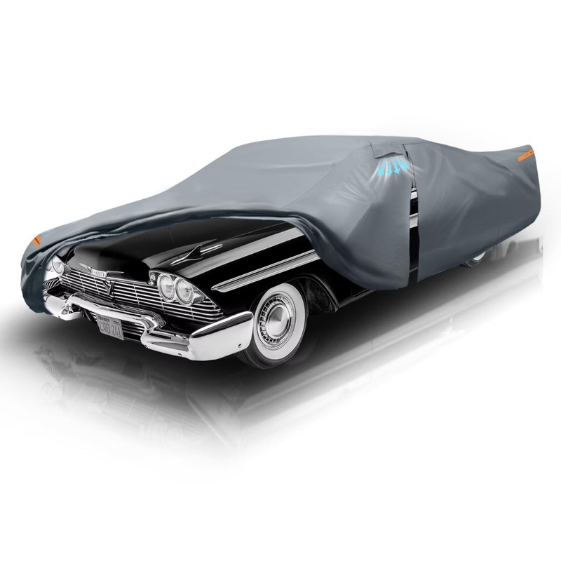 Waterproof Plymouth Fury(1956-1989) Car Cover with Breathable Vents, [2025 Upgrade] Premium Covers with Cotton Liner and Zipper Door, Sun Rain Snow Dust Uv Protection.(Gift with Towel)