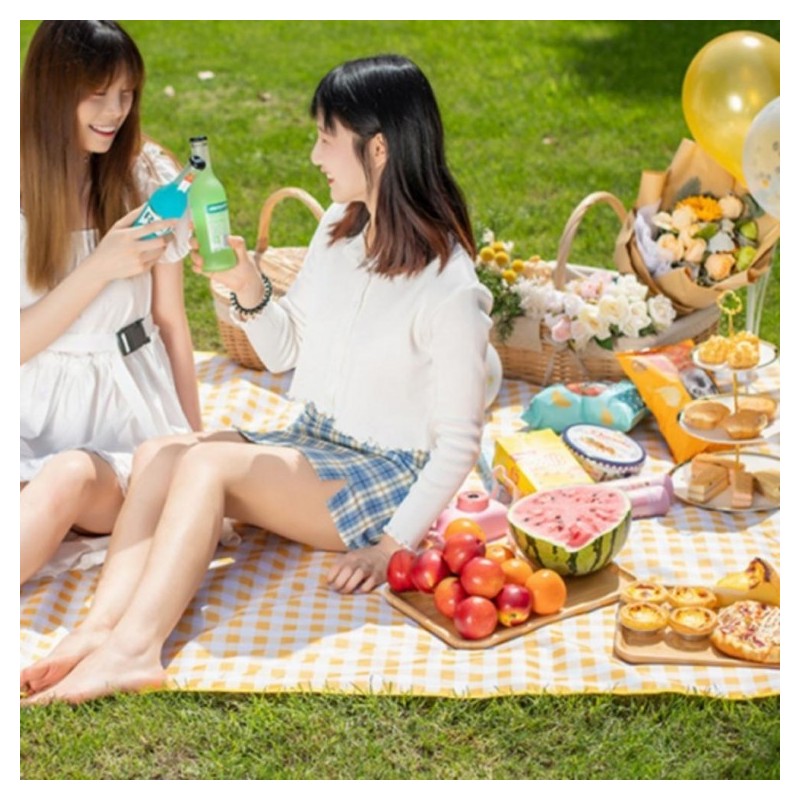 Waterproof Portable Large Picnic and Camping Mat Yellow Check 10ea