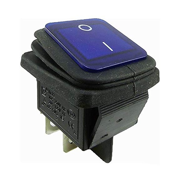 Waterproof Rocker Switch 2-Pin (4 Pin) On/Off 250V 16A Blue Illuminated (1)