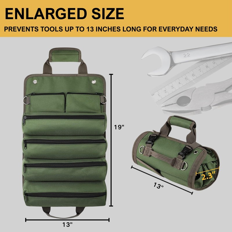 Waterproof Roll Up Tool Bag - 11 Pockets Tool Roll Bag Organizer for Mechanics, Electricians & DIYers | Portable Organizer with Shoulder Strap & Detachable Pouches