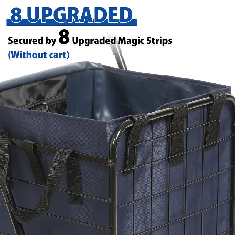 Waterproof Shopping Cart Liner with Cover, 18" X 15" X 24" Square Bottom, Fits Standard Folding Trolley, Cover and Adjustable Straps for Easy Secure Attachment (Blue