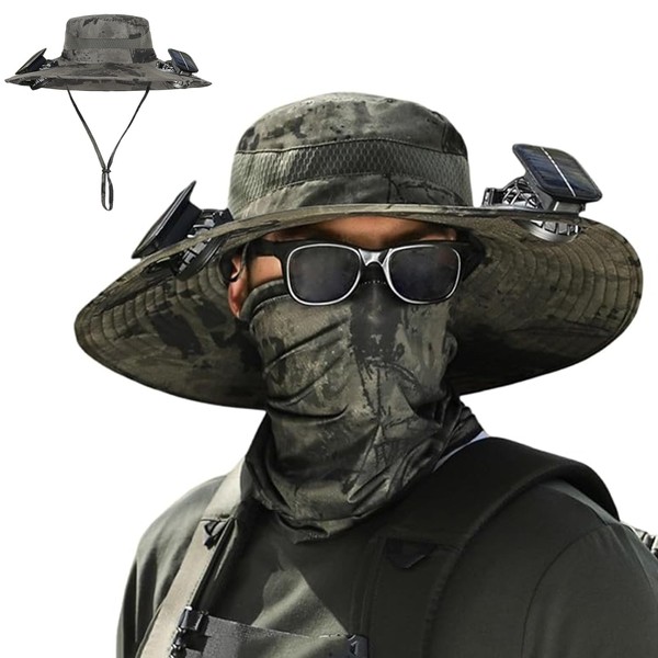 Waterproof Solar Fan Hat, Fishing Hat with Fan for Men, 3-Speed Setting,Waterproof Outdoor Fishing Hat (US, Alpha, One Size, Army Green Ink)