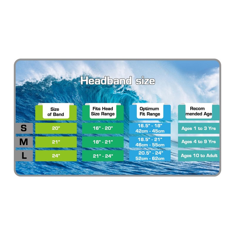 - 3 SIZE AVAILABLE: The right fit is important; snug but not too tight is the goal. Size S - 52cm/20.5inch fit most toddlers 1-3 years old; Size M - 56cm/22inch fit most kids 4-9 years old; L Size - 62cm/24.5inch fit most 9+ years old big kids and adults. Ensuring the headband is fitted correctly onto the head is also super important - check our size guide (see product images section)