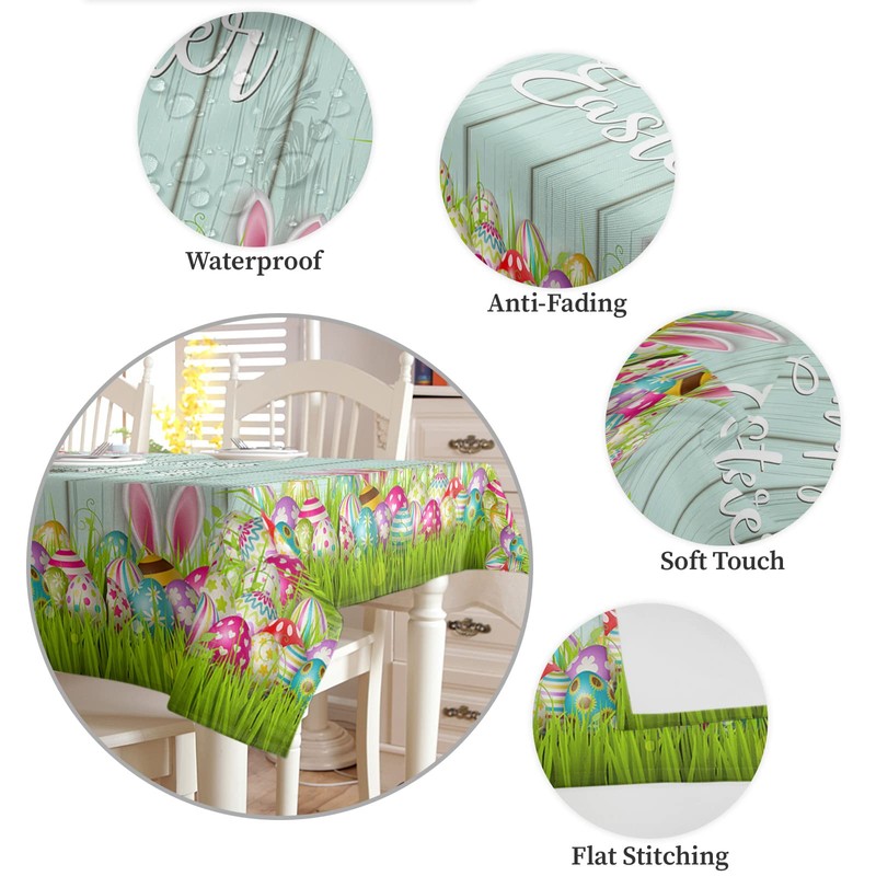 - ★HARD WEARING: Easter table cloth for dinner table has strong toughness, durable and not easy to wear. The surface of the tablecloth has a waterproof coating, which can easily isolate water and oil stains and facilitate cleaning. Stain proof tablecloth avoids the damage to the tabletop caused by sharp tableware and high-temperature food, maintains the integrity of the tabletop, and prolongs the service life of the table.