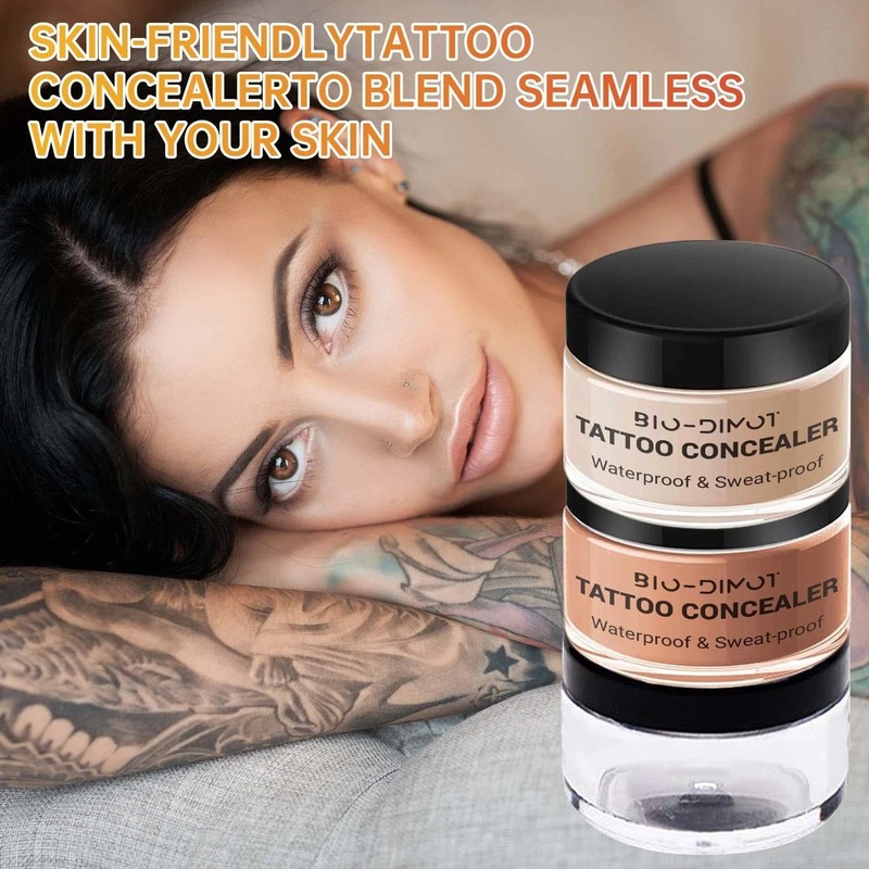 - Customizable Tattoo Concealer Set: Includes 3 shades (light to natural) for a perfect skin tone match. Hide tattoos effortlessly and boost your confidence