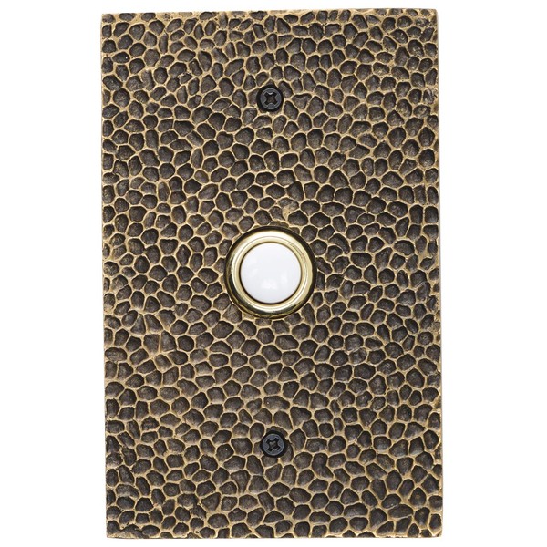 Waterwood Solid Brass Large Hammered Doorbell in Antique Finish - Wired & Illuminated Push Button from Environmentally Friendly Recycled Material
