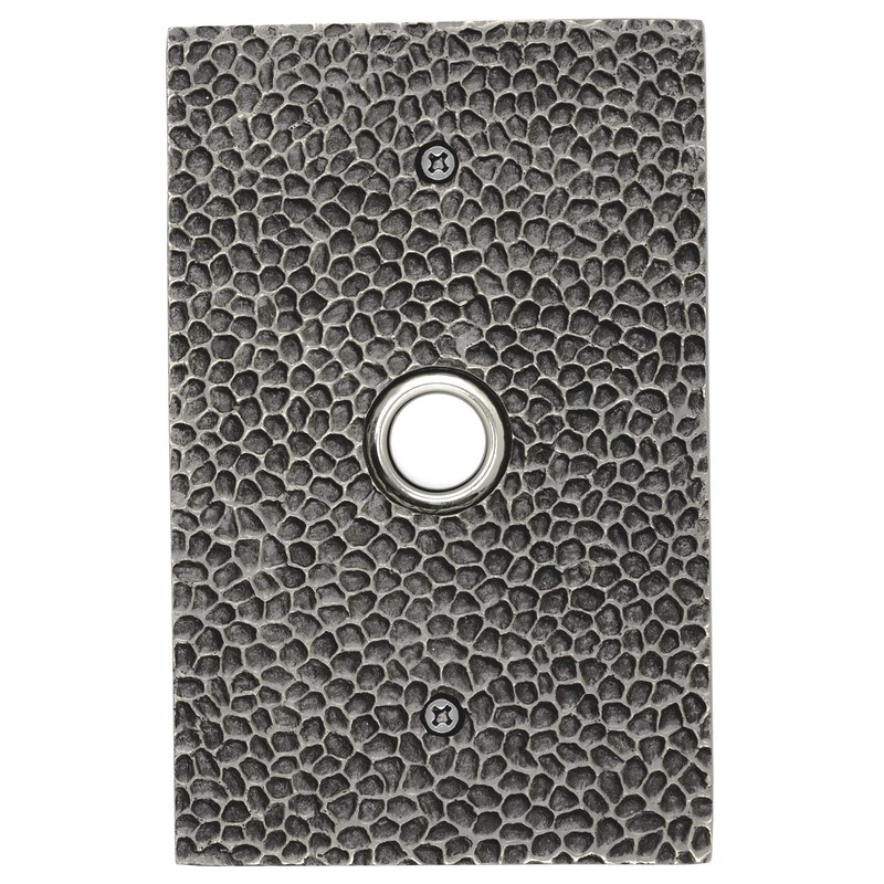 Waterwood Solid Brass Large Hammered Plate Doorbell in Pewter - Wired & Illuminated Push Button from Environmentally Friendly Recycled Material