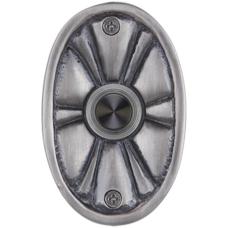 Waterwood Solid Brass Oval Flower Doorbell in Pewter - Wired & Illuminated Push Button from Environmentally Friendly Recycled Material