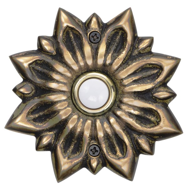 Waterwood Solid Brass Radiance Doorbell in Antique Finish - Wired & Illuminated Push Button from Environmentally Friendly Recycled Material