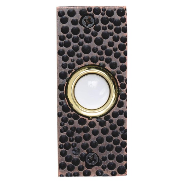 Waterwood Solid Brass Small Hammered Plate Doorbell in Oil Rubbed Bronze - Wired Illuminated Push Button - Environmentally Friendly Recycled Material
