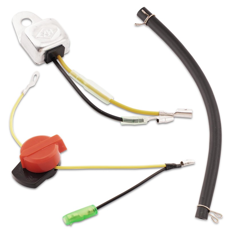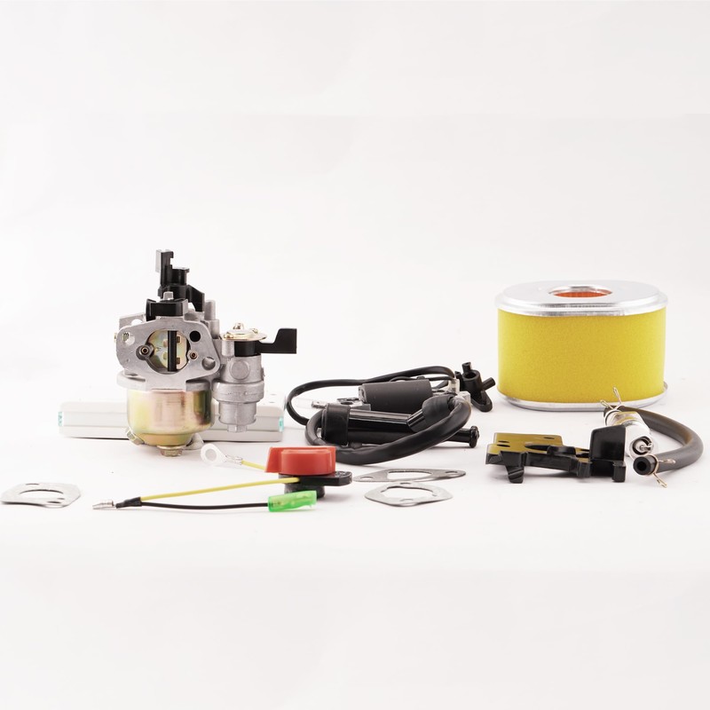- Package includes: 1 x carburetor, 3 x gaskets, 1 x insulation board, 1 x three cable switch, 1 x choke level, 1 x air filter, 1 x fuel line with clips, 2 x fuel filter, 1 x fuel gas tank joint filter, 1 x oil sensor, 1 x spark plug.