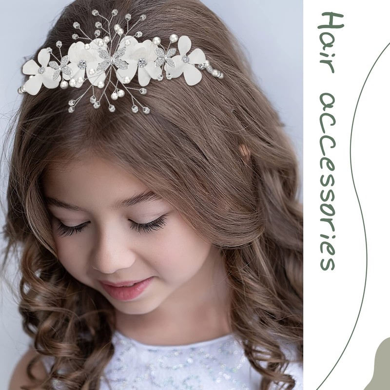 - 🌺First Communion Hair Accessory: This hair accessory is handmade with white flowers, simulated pearls, alloys and rhinestones, with a unique and well-crafted design, it will make you stand out when you wear it.