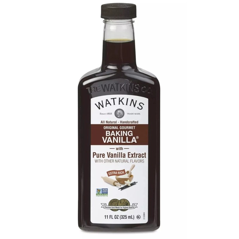 Indulge in the rich, creamy aroma of Watkins Original Gourmet Baking Vanilla Extract, the purest way to infuse your baked goods with a classic vanilla flavor. With an 11 oz bottle that promises long-lasting freshness, your culinary creations will delight in the depth and quality of this all-natural ingredient.Crafted in the United States, this extract is perfect for anyone seeking a gluten-free alternative to enhance their favorite desserts, beverages, and savory dishes. The convenience of a single bottle pack ensures easy storage and accessibility, making it an essential addition to your pantry staples.Watkins All Natural -Handcrafted Original Gourmet Baking Vanilla delivers the sare quality you've trusted for years. This kitchen staple is perfect for cakes, cookies, crème brúlée,waffles, brownies, cupcakes, muffins, ice cream and more.For recipes and more, go to Watkins1868.com.