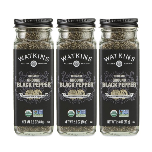 Watkins Gourmet Organic Spice Jar, Ground Black Pepper, 2.8 Ounce (Pack of 3)