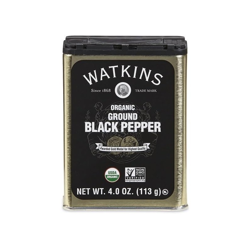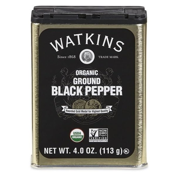 Watkins Gourmet Organic Spice Tin, Ground Black Pepper, 4 oz