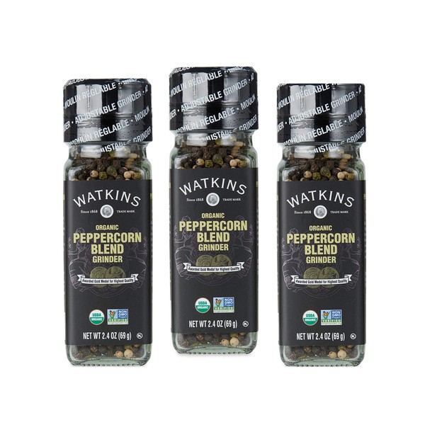 Watkins Organic Grinder, Peppercorn Blend, 2.4 Ounce, 3-Pack