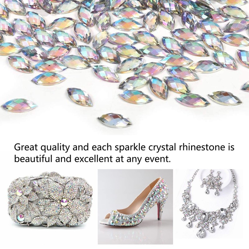 - SMALL BUT DELICATE - Horse eye shape rhinestone is 7 x 15mm / 0.27 x 0.59", prismatic design, nice cutting and smooth surface that you can make some nice fancy flower designs with these!