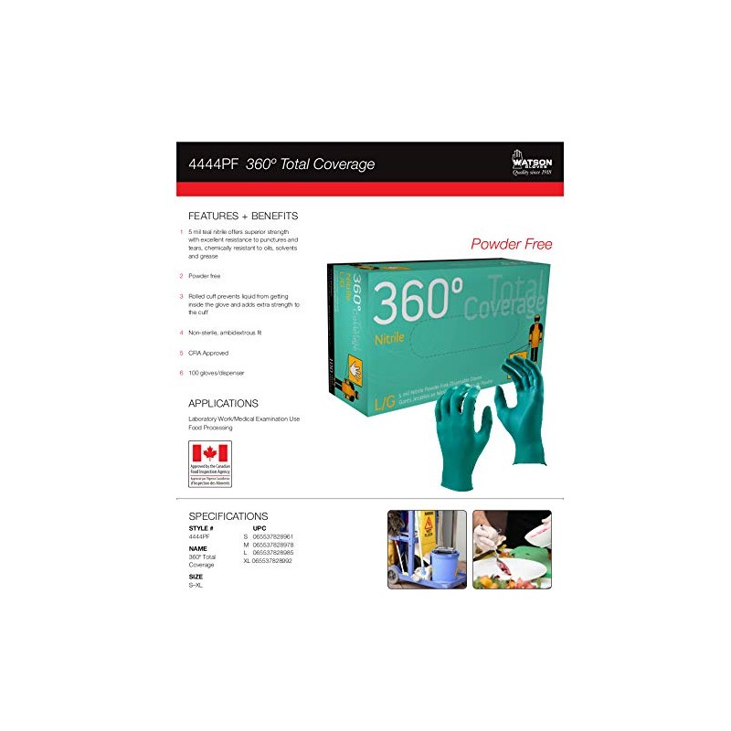 | Manufacturer: | Watson 4444PF 360 Total Coverage Gloves Large – 5 mil Teal - 100 Pieces |