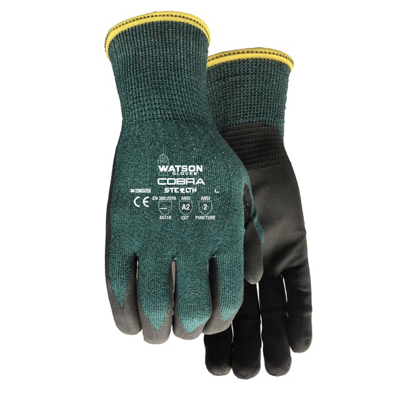 Watson Gloves, #365 - Stealth Cobra Gloves, Cut Resistant, ANSI A2, Touchscreen Compatible (1 Pair, Extra Large)