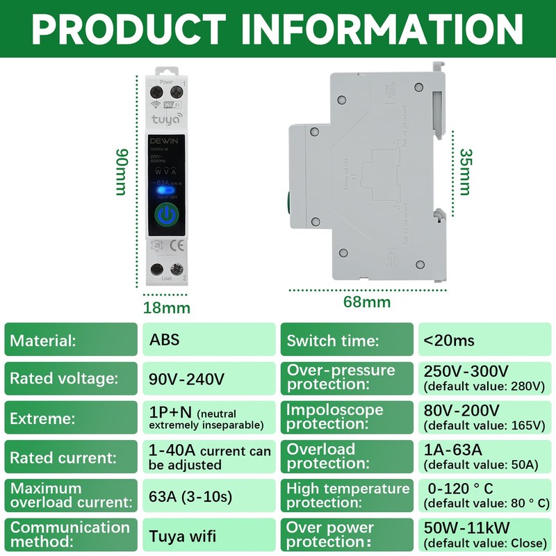 • 【Intelligente Steuerung】Der WLAN-Stromzähler Hutschiene verfügt über eine Messfunktion. Sie können den Ein-/Aus-Status des Geräts über die „TUYA“-App fernsteuern und den Echtzeitstatus des Verbrauchers überwachen – für ein smartes Leben