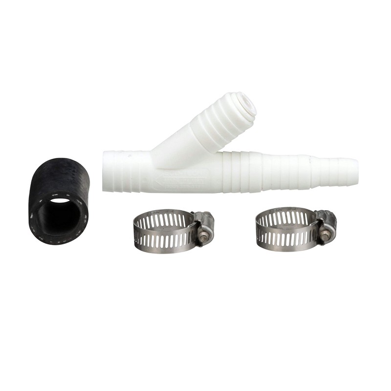 - Kit includes: (1) Drain Line Adapter with Push-in Fitting and barb, (1) Hose Coupler, and (2) Marine Stainless Steel Hose Clamps; smaller barbs can be cut off for 3/4"" and 7/8"" drain line installations