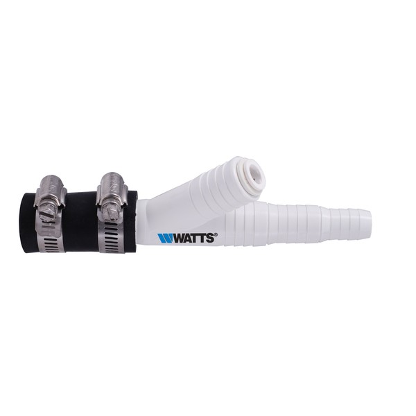 Watts Premier Universal Dishwasher / Drain Line to Garbage Disposal Adapter for Reverse Osmosis Systems, Push-In Fitting & Barb, Hose Coupler, Marine Stainless Steel Hose Clamps, No Drilling Required