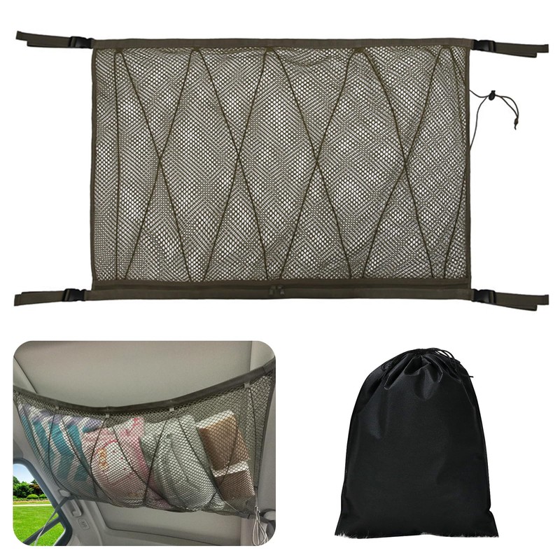 WATUNID Car Ceiling Cargo Net Pocket with Double-ended Zipper, 35.4"x25.5" Load-Bearing Car Roof Storage Organizer with 1PCS Drawstring Bag, Large Capacity Cargo Netting for Putting Quilt Toy Sundries