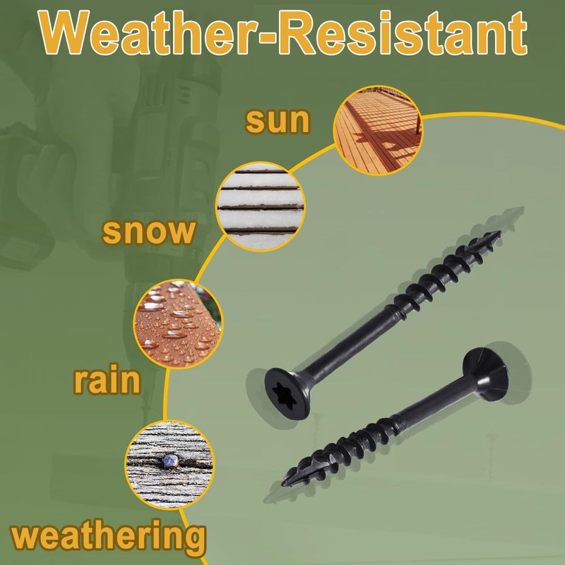 - SUPERIOR ANTI-RUST COATING: Wavanta wood screws are manufactured with a special black coating that has been tested in salt spray for 720 hours to prevent erosion and rust. These outdoor decking screws can withstand long-term exposure to sunlight, moisture, rain, and snow