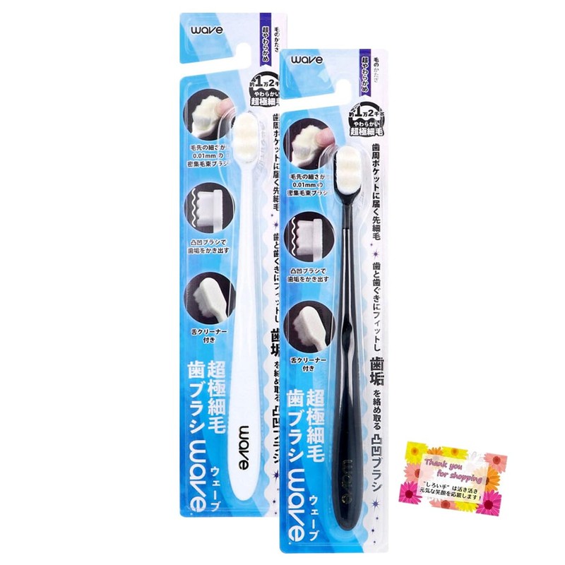 【舌クリーナー付き 極細柔らか毛】 歯垢を絡め取る凸凹ブラシ 超極細毛歯ブラシ wave(ウェーブ) やわらかめ 2色アソート 【2個セット】