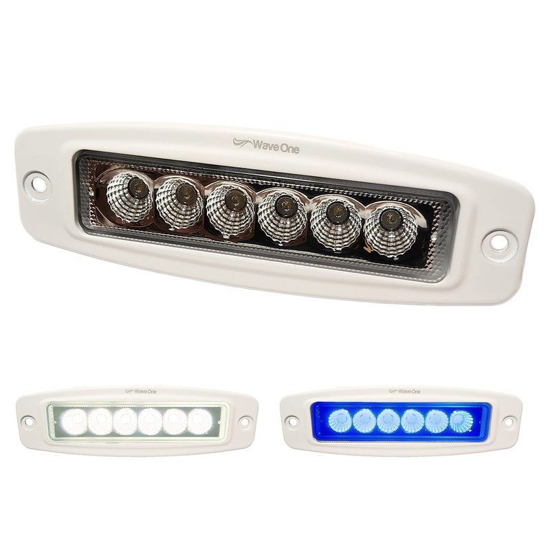 Wave One Marine | Dual Color FLUSH MOUNT Boat Spreader LED Light | Deck Flood Beam Stainless Hardware | IP68 Waterproof Multicolor High Lumen Output (WHITE)
