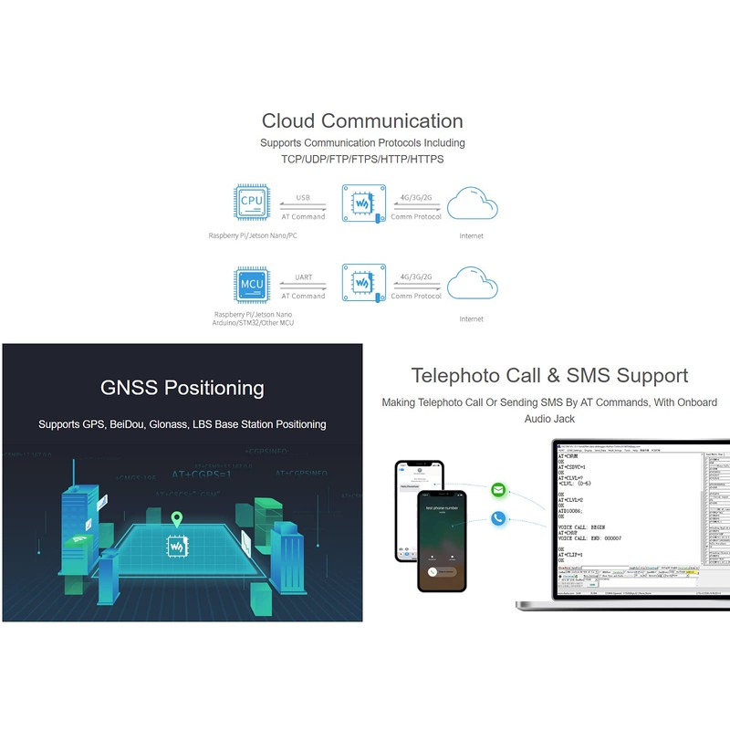 - Onboard USB interface, to test AT Commands, get GPS positioning data, and so on Onboard CP2102 USB to UART converter, for serial debugging Breakout UART control pins, to connect with host boards like Arduino/STM32