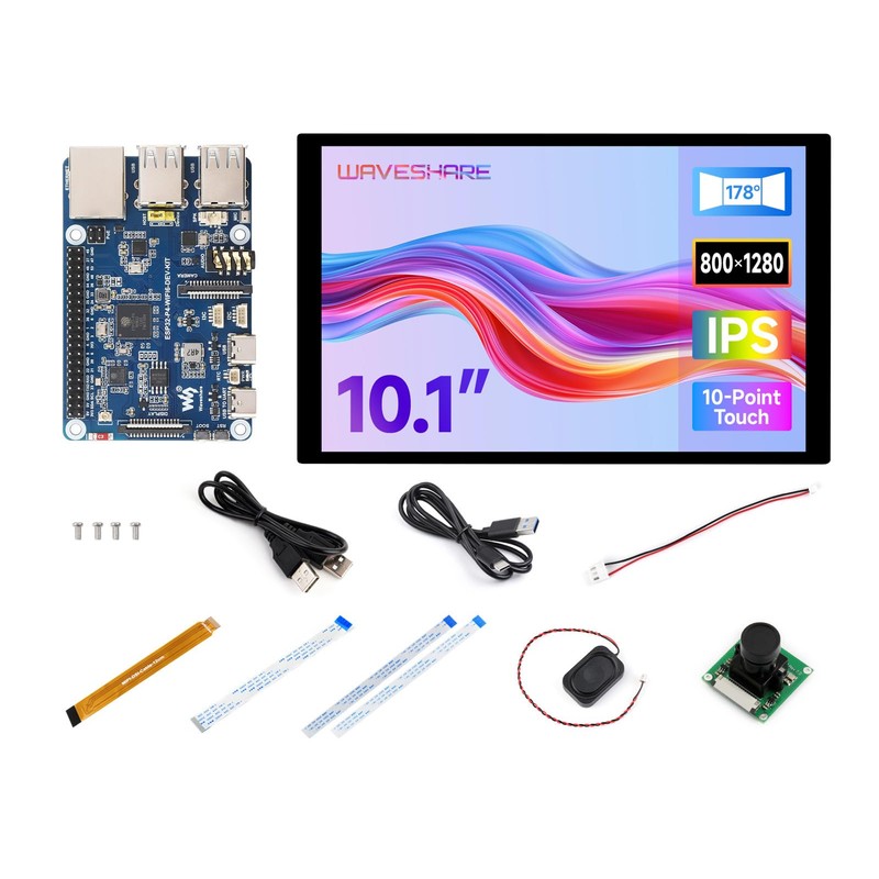 Waveshare ESP32-P4-WIFI6-DEV-KIT High-Performance Development Board, Based on ESP32-P4 & ESP32-C6, Supports Wi-Fi 6, Bluetooth 5 & BLE 5, Bundle with Board, 10.1 inch Screen