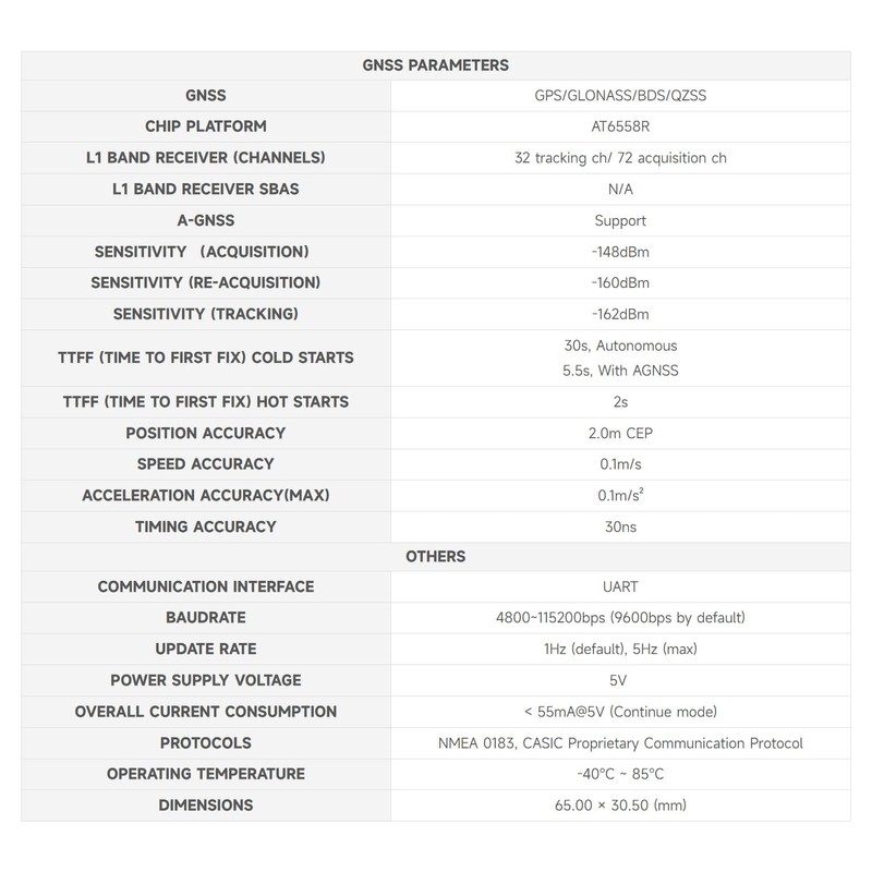 • Flexible Communication & Power: Featuring UART communication with a baud rate range of 4800~115200bps (default 9600bps), the module includes an onboard battery holder for an ML1220 rechargeable cell to preserve ephemeris data and support hot starts.