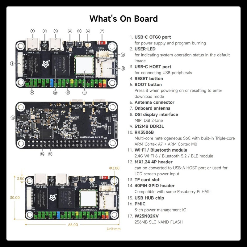 - Cost-Effective Solution for Development: Offering a budget-friendly price, the Lyra Zero W provides a feature-rich platform for developers to prototype and create advanced embedded systems without exceeding their budget. Rich WiKi Resources: We provide official Wiki resources, please contact us for more information.