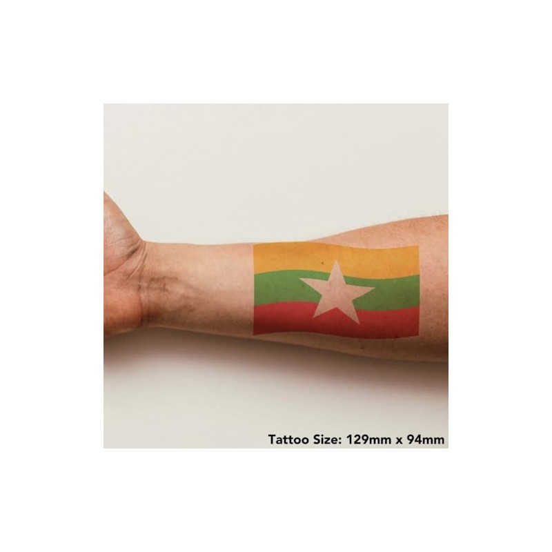 'Waving Burmese Flag' Temporary Tattoo - Water Resistant, Skin-Safe, Non-Toxic Transfer (TO00069987)