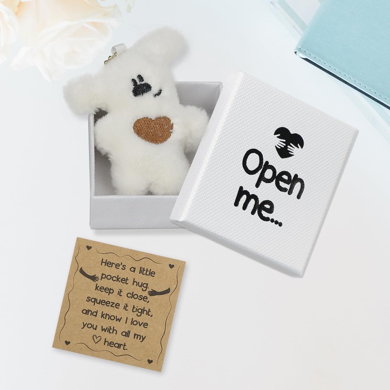 - 【Size】The white box measures 3.35inch*2.75inch, height 0.98inch, the bear's size: 3.35inch*2.75inch, the card's size: 2.36inch*2.36inch, this small box can go right through the mailbox, making it a lovely surprise!