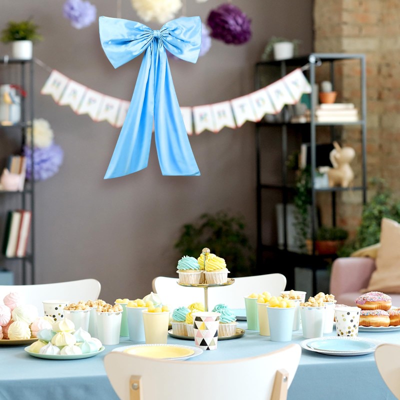 Wavwavw Bow Decor Large Bow for Room, Coquette Giant Ribbon Tie for Birthday Party Backdrop Wall Decor(Sky Blue,24 x 18 Inches)