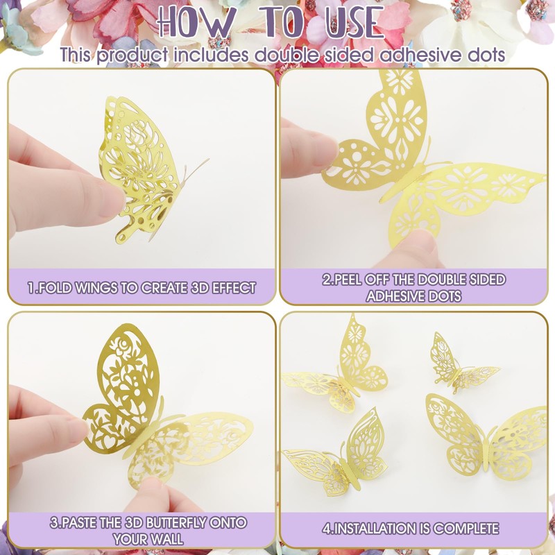 - Versatile and Customizable: with a total of 48 gold butterflies in 4 styles and 3 different sizes, you have many possibilities for creativity and customization; Mix and match the butterflies and faux flowers to create different arrangements that suit your taste and interior design