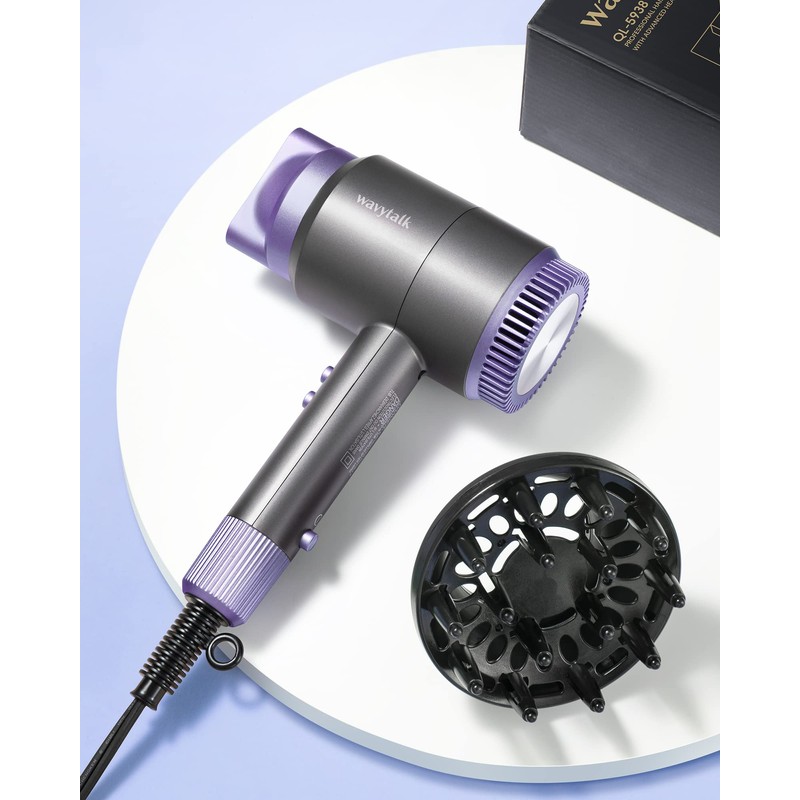 Wavytalk Hair Dryer with Diffuser 1600W Ionic Blow Dryer for Fast Drying with Concentrator, Lightweight Purple.