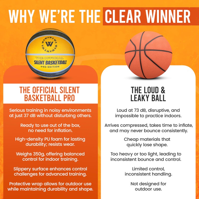 - 🏀【NOT COMPRESSED】– The Official Silent basketball PRO EDITION does NOT arrive compressed in vacuum packaging when shipped. This difference, compared to generic balls, allows for more consistent bouncing and ready to play on arrival!