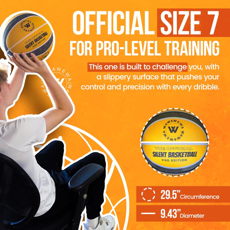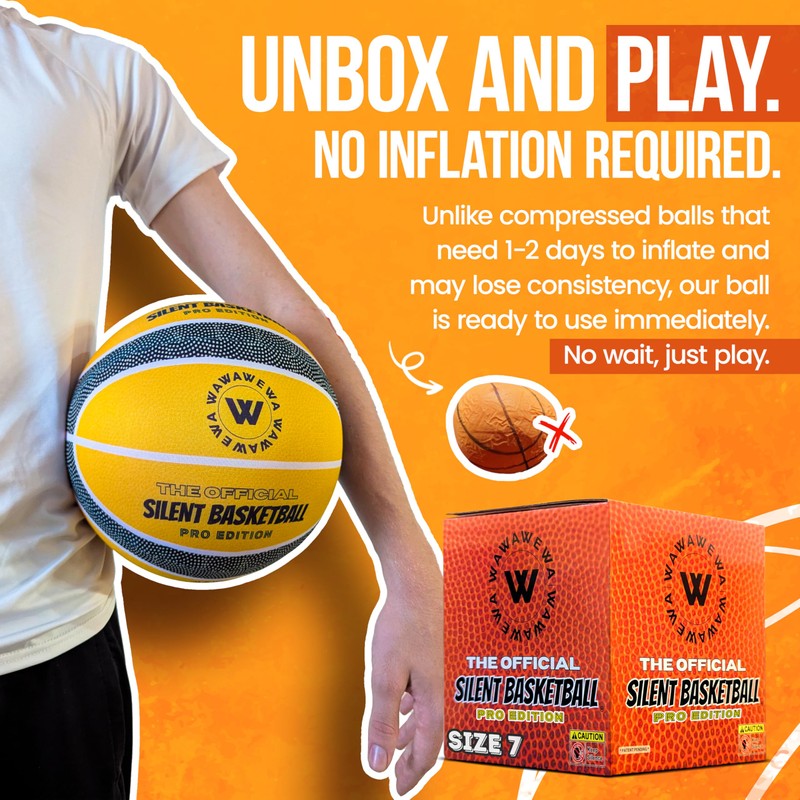 WAWAWEWA The Official Silent Basketball PRO (Size 7) – NOT Compressed Indoor Basketball for Quiet Dribbling – Airless Ball for Advanced Training – Ready to Play Basket Ball for All Ages (29.5")