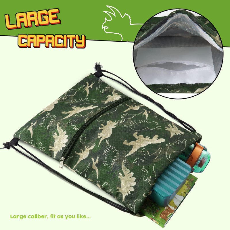 WAWSAM Dinosaur C Drawstring Backpack, Waterproof, 15 cu in, Polyester, Daypack Backpack for Boys Kids Swim Beach Gym Dance Travel