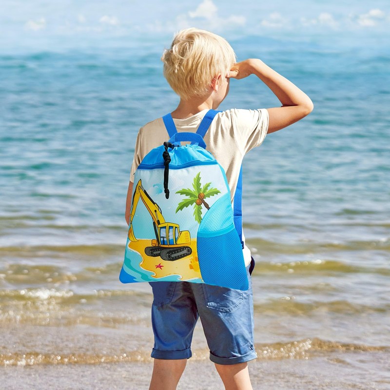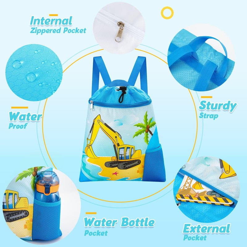 - ATTRACTIVE LOOK: Designed and manufactured by ourselves using an advanced printing process. Add a splash of fun to your family's beach day with our unique excavator drawstring backpack for kids. Whether used as a kids swim bag or a boys beach bag, its adorable design is sure to capture kid's hearts.