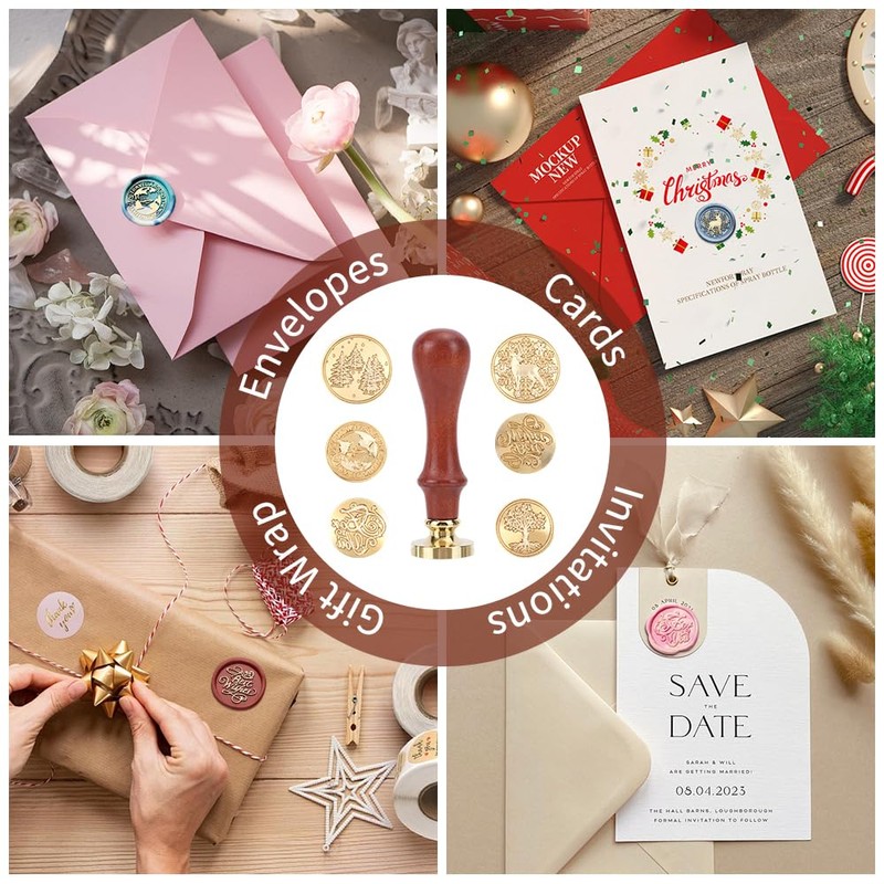 • Various shapes: Each of the removable wax seal stamp heads has a unique pattern shape, e.g. B. "Travel around the world", "Big Tree", "Snow Moose", "Snow Forest", "Best Wishes" and "For You", which are easy to identify. Bring a lot of fun to your creative decoration
