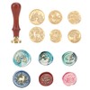 Wax Seal Set, 6 Pieces Wax Seal Copper Seals 25mm/30mm Removable Brass Seal Head and 1 Wooden Seal Handle, Suitable for Creative Gifts, Envelopes, Invitations