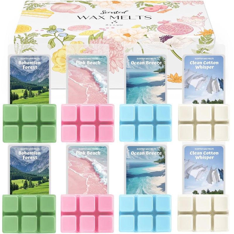 WAXCANPY Summer Wax Melts, Scented Soy Wax Melts, Natural Soy Wax Cubes - 4 Scents x 2 : Bohemian Forest,Pink Beach,Ocean Breeze,Clean Cotton Whisper(8 x 2.5 oz)