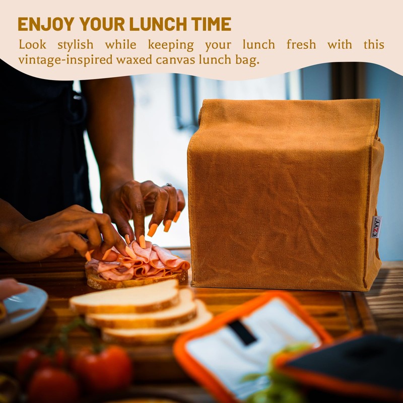 - Enjoy Your Lunch Time: The zipperless lunch box is constructed from sturdy waxed canvas for a vintage feel. It is perfect for carrying your lunch or snacks no matter your age. Makes you look forward to lunchtime even more! So why not bring back that touch of luxury with this retro, Eco Lunch Bag?